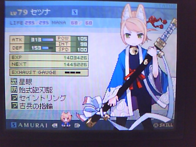 と、言っても差し支えないであろう辺りまではクリアした。 とりあえず隠しダンジョンの最上階のNDさんを倒した。 サブイベントは一応全部クリアして、EXスキルも全部回収してるはず。 一応フィールド上のフロワロも全部踏み潰した。 ただ、クエストがまだ全部終わってない。 鳥の羽100個とか20個ぐらいしか集めてないけどもはややる気が・・・ というわけで、クエストコンプは諦めて2週目行って来ると思う。 今回は侍騎魔癒のパーティでいったから、2週目は残りの3職で3人旅でもしようかな。 本当は2人旅を予定してたんだけど、残される1職が不憫なので・・・ 別に、狐耳侍4人で旅に出ても全然問題は無いんだけどね! ↓ギルド「StrikerS」の4人。今まで本当にありがとう!